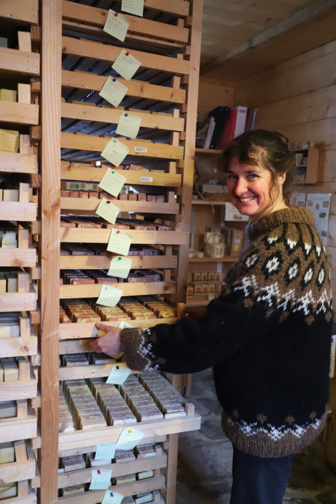 Le savon de 100g est à 6 EUR/pièce sans huiles essentielles et à 7 EUR/pièce avec huiles essentielles, et il dure en moyenne trois fois plus longtemps qu’un flacon de 250 g de gel douche.